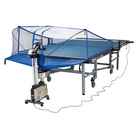 Autres fonctions et performances : Un affichage lumineux sur la tête du robot indique le spin lors de l'éjection de la balle. Le filet circulaire est facile et rapide à monter (à démonter également). Il récupère les balles et les transporte au robot. Un fonctionnement permanent est ainsi assuré. Conforme à toutes les tables standard, un montage et démontage en quelques minutes. Un montage du robot n'est pas nécessaire.